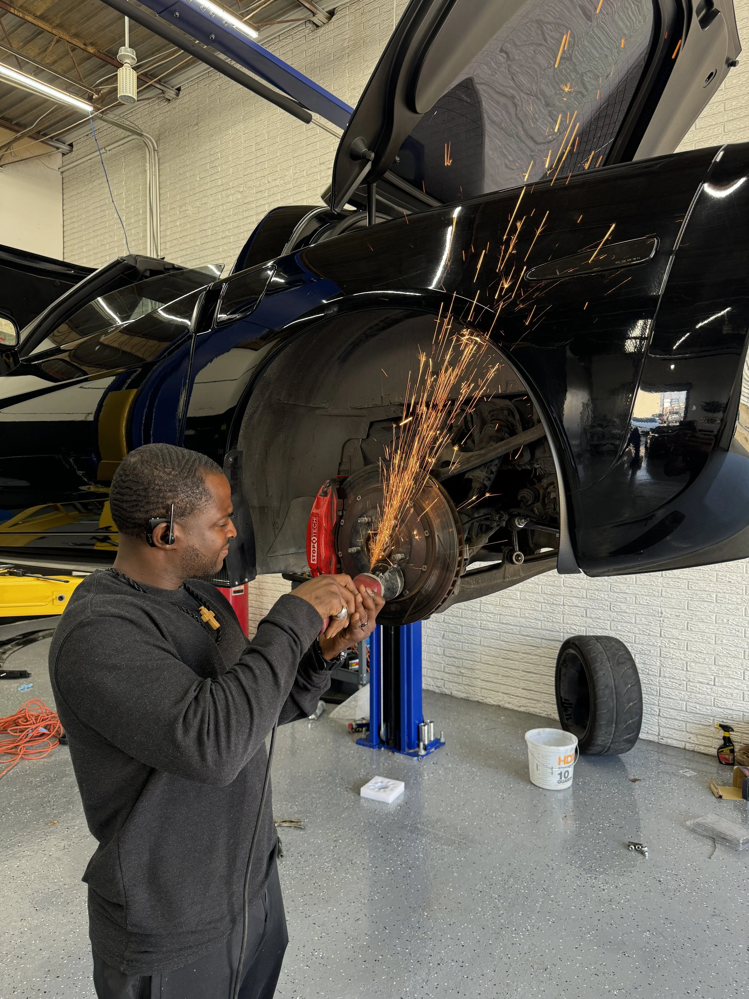 Need to detail your car or work on body panels? We’ve got you covered with our spacious bay space Need to detail your car or work on body panels? equipped with a remote-controlled hydraulic lift, tools, and all necessary equipment.